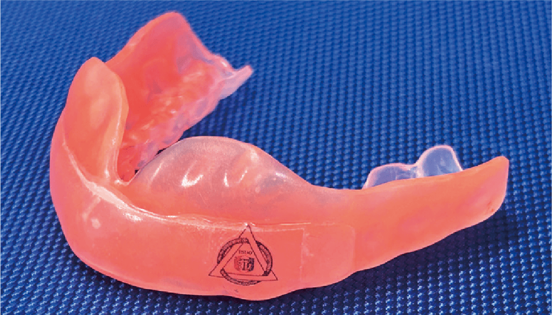 マウスガードは、マウスピースとも呼ばれ、スポーツの際に⼝腔に装着して、⻭と⼝の外傷を予防したり、ダメージを軽くしたりするための安全具です。特に⻭科医院で作製するカスタムメイドマウスガードは、既製品に⽐べて傷害予防効果や装着感など、すべての⾯で優れています。